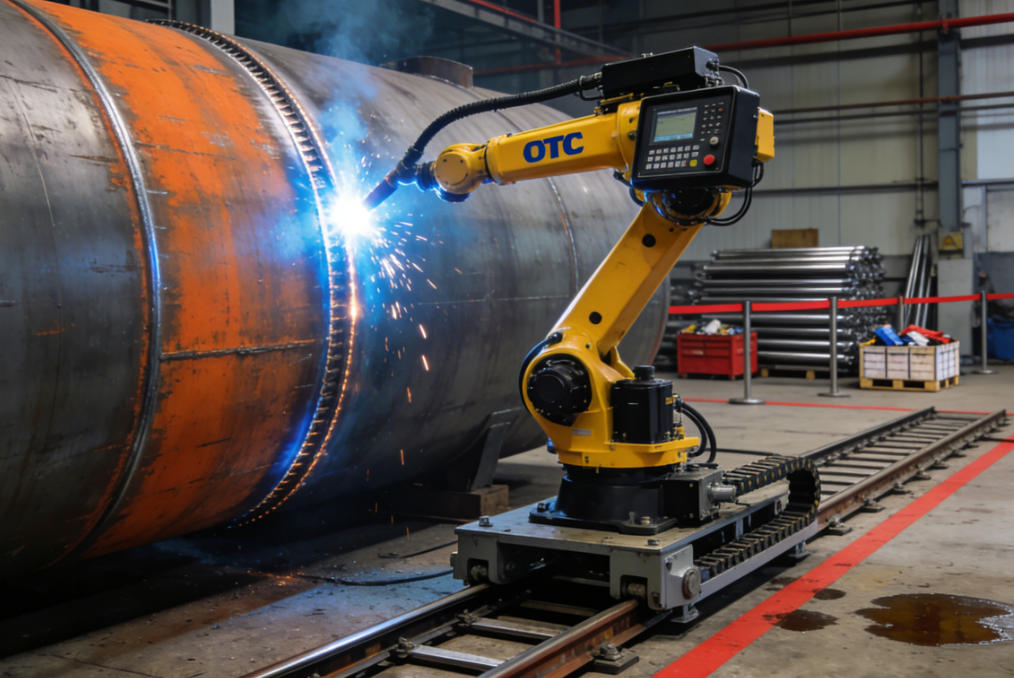 OTC 机器人在储存罐拼缝焊接中,通过 “机器人 + 电源 + 跟踪 + 变位” 的一体化方案,实现高效、精准、稳定的自动化焊接,特别适合中大型储罐批量生产与现场施工,助力企业降本增效、提升竞争力。